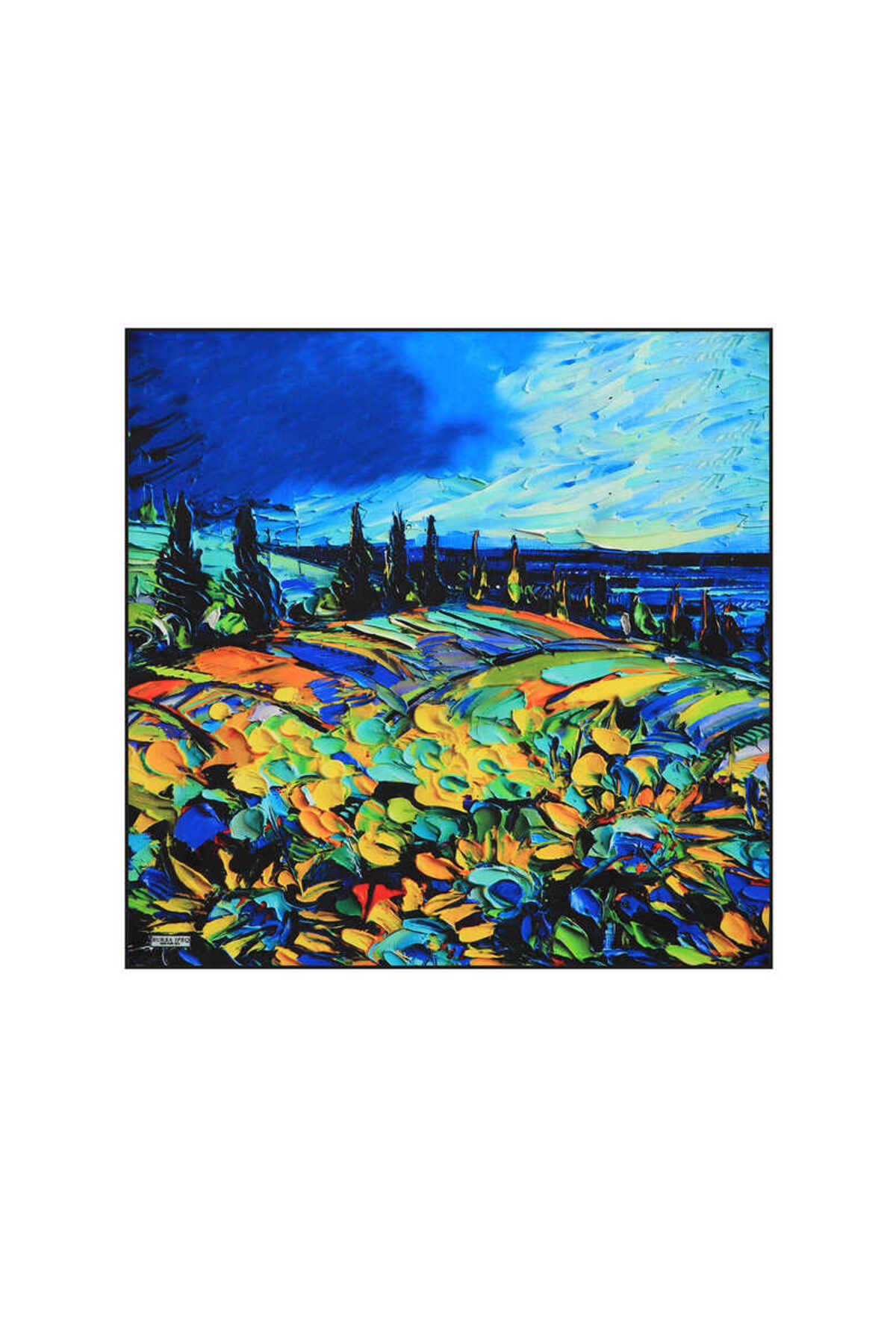 Bursa İpek Mavi Gün Çiçekleri Desen İpek Mendil
