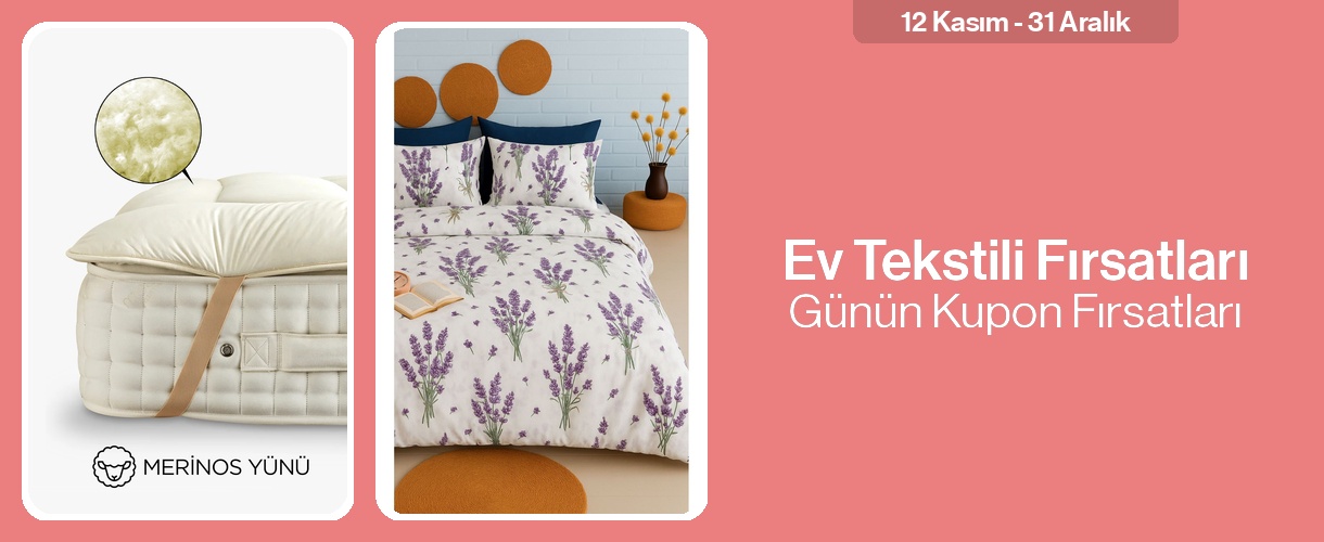 Ev tekstili kategorisinde yer alan parçalar odanın dekorasyonunda önemli rol oynar. Evinde değişiklik yapmak isteyenler ya da yeni evlenecekler yatak odası ürünlerini satın alabilir. Halı & kilim & paspas çeşitleri arasında dijital baskılı, desenli, sade ve renkli tasarımları bulabilirsiniz. Perde modelleriyle odanın dekoruna farklı bir hava katmak mümkündür. Tek kişilik ve çift nevresim takımı çeşitleri renkli ve desenler göze çarpar. Sağlık bir uyku için kışın sıcak yazın da serin tutan yastık tasarımlarını kullanabilirsiniz. Kırlent ve kırlent kılıfı ile odaya farklı bir hava katabilirsiniz. Trendyol Sanat ürünleri de yine dekoratif amaçlı kullanılır. Özgün çizgilere sahip tablo çeşitleri öncelikli tercihler arasında yer alır. Ev dekorasyonu için severek kullanılır. Çalışma odası dekorunda da tercih edilebilir. Çalışma masasında şık abajurlar kullanabilirsiniz. Bahçe mobilyası arasında; salıncak, hamak, bahçe takımı çeşitleri rağbet görür. Tasarlanan geniş ürün yelpazesi sayesinde yaşam alanlarınızı keyifli hale getirebilirsiniz.