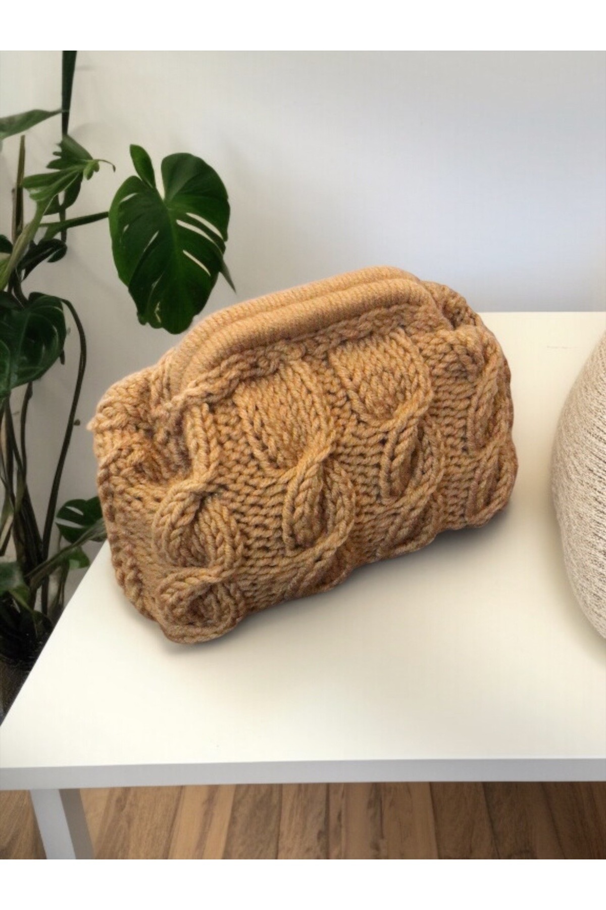 By G Tasarım Camel Renk Yün ip Örgü Burslu Çanta/Clutch Özellikleri