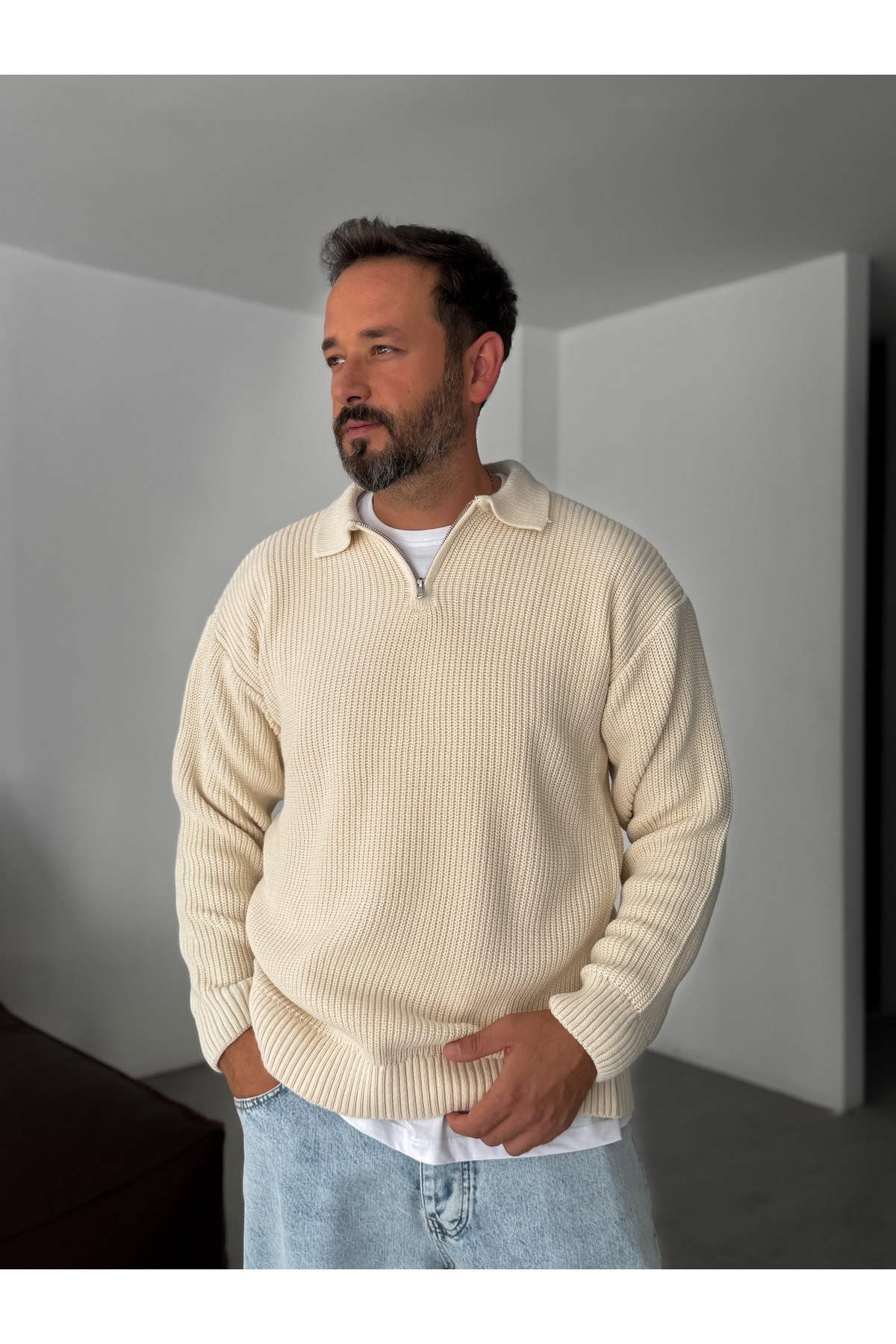 BYBASICMAN Bej Yarım Fermuarlı Triko Sweat DF-001 Özellikleri
