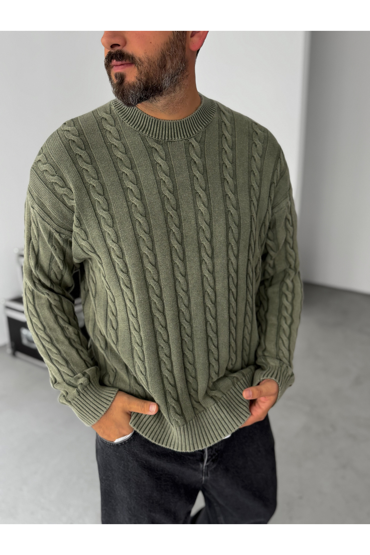 BYBASICMAN Haki Yıkamalı Örgü Triko Kazak TW-3267