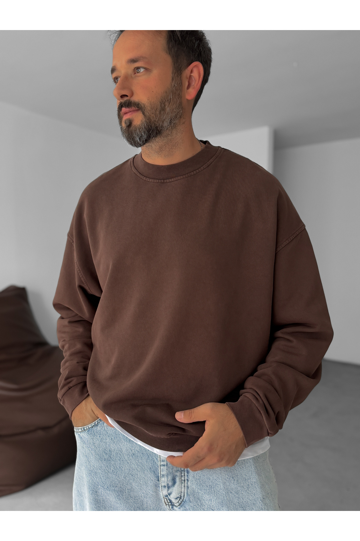 BYBASICMAN Kahve Yıkamalı Basic Sweatshirt DF-2065