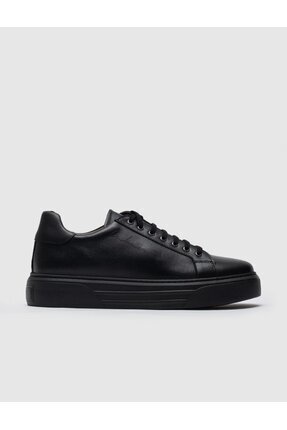 Cabani Hakiki Deri Kauçuk Taban Siyah Bağcıklı Erkek Spor Ayakkabı