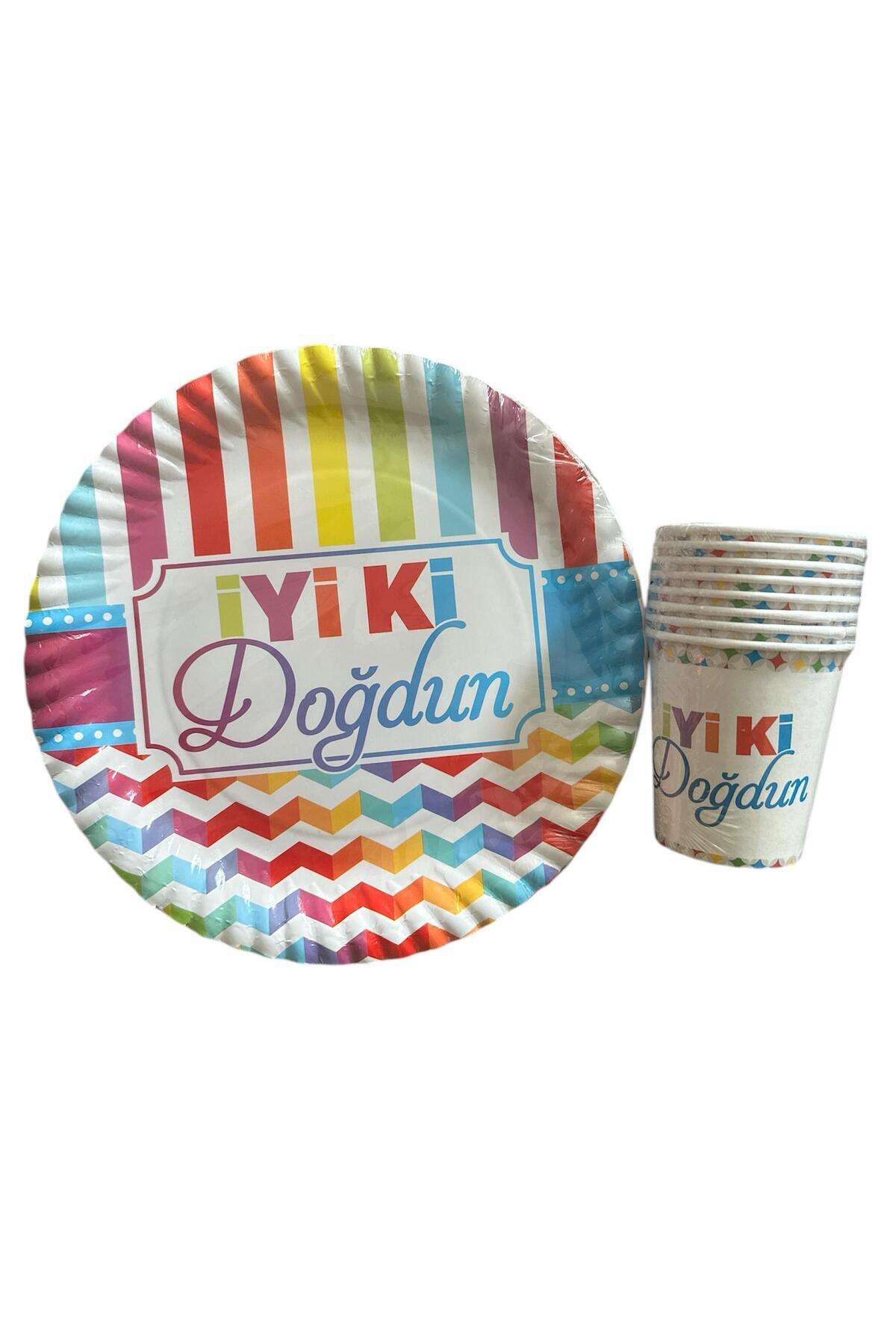 Cadde Süs İyi Ki Doğdun Temalı Mavi Tabak Bardak 8'li Set Özellikleri