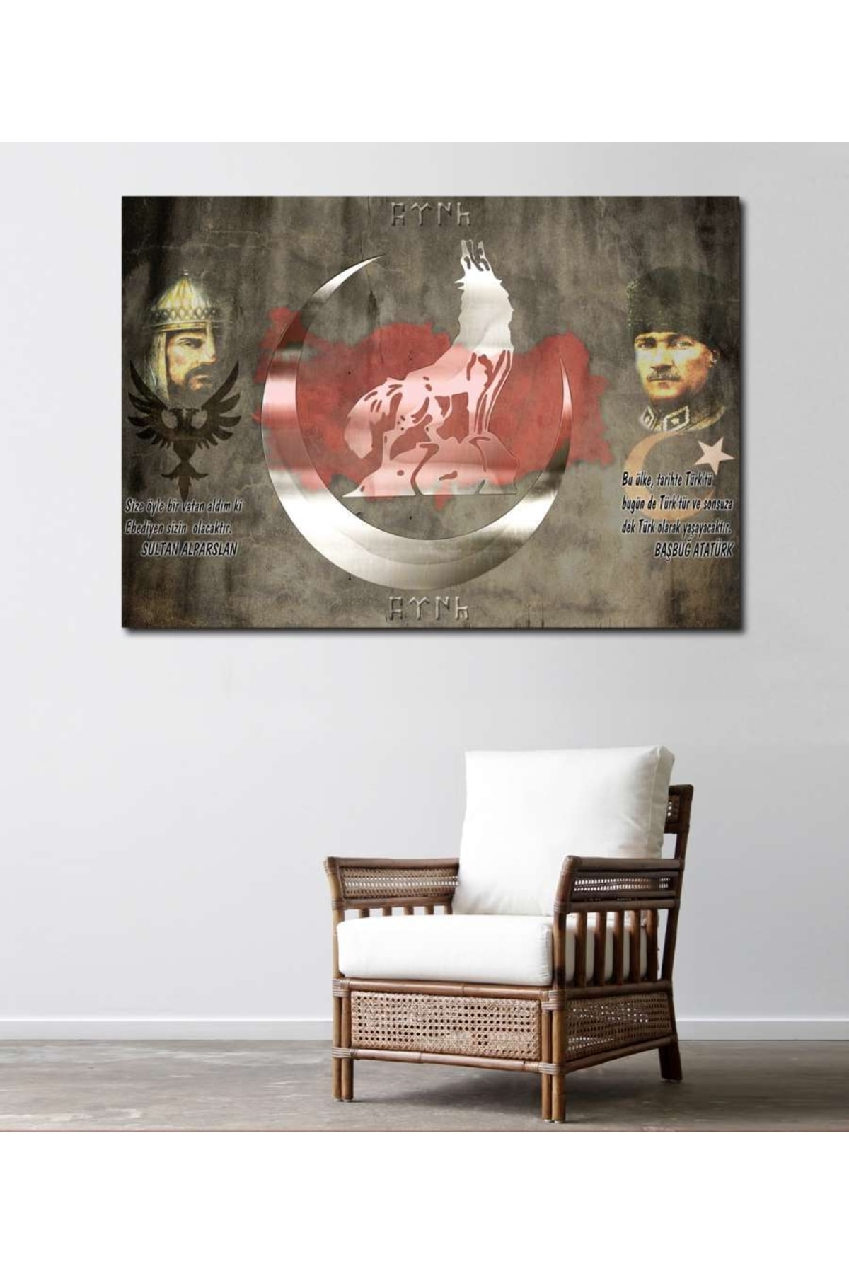 caddeko Srk409 - Başbuğ Atatürk Ve Sultan Alparslan, Bozkurt Türkçü Kanvas Tablo