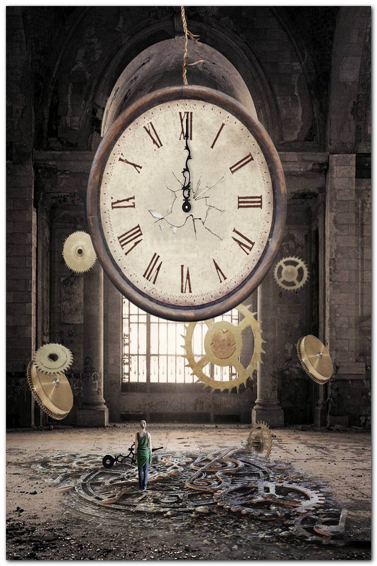 Cakatablo Ahşap Tablo Dev Saat Ve Zamanın Dağılışı (50x70 Cm Boyut)