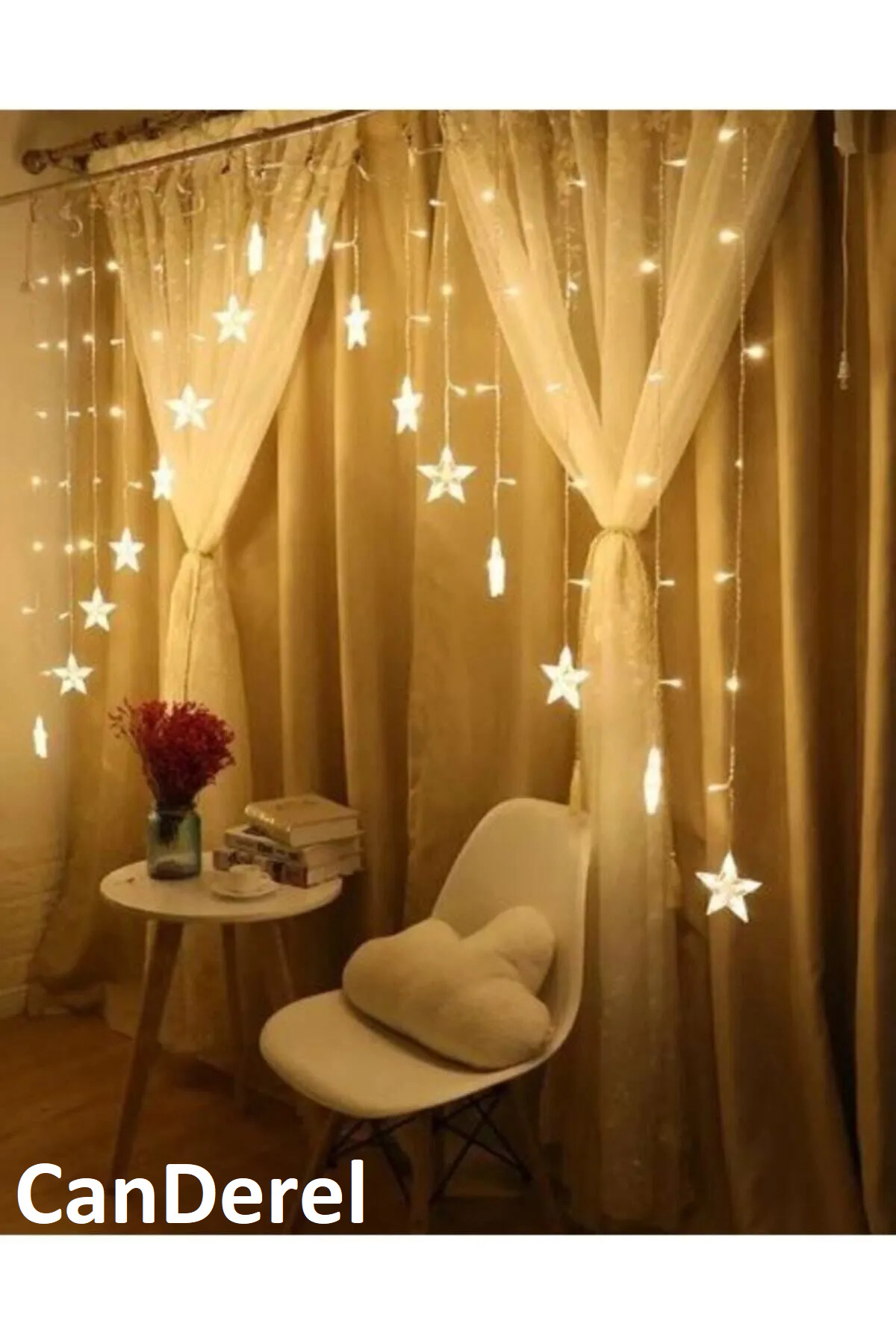 Canderel Saçaklı 8 Mod Yıldız Perde Led Gün Işığı Animosyonlu Çarpraz Led