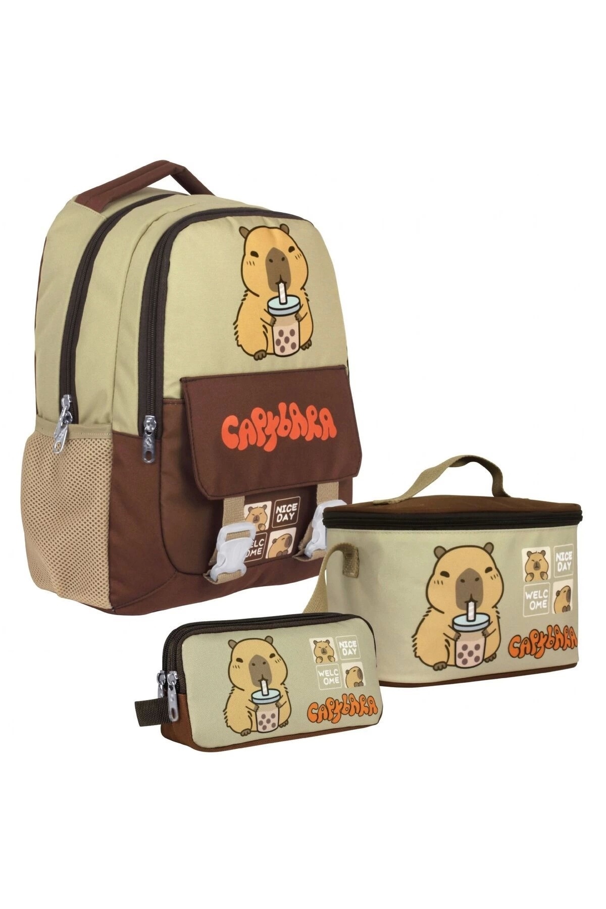 capybara (Erkek Çocuk - Kahverengi - Bej) İlkokul Üçlü Çanta Seti - SETCPB5200A