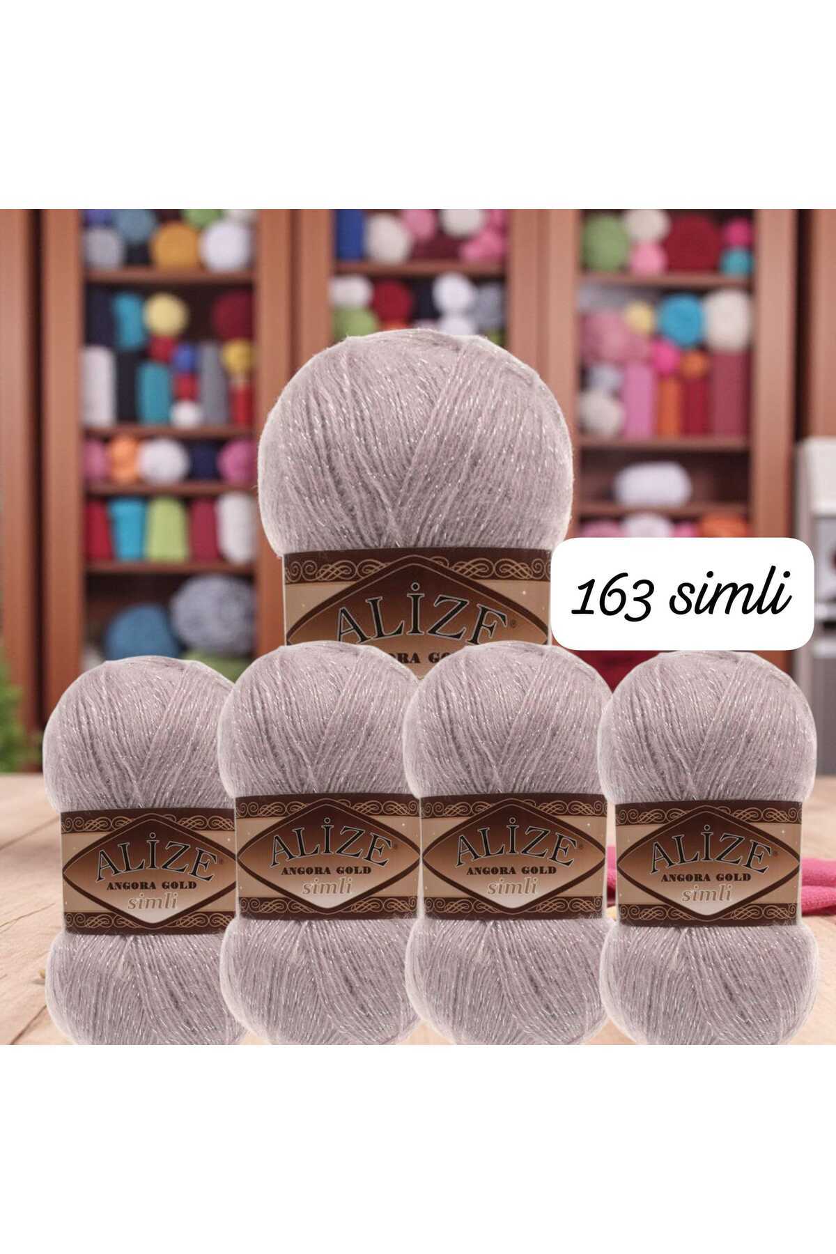 ÇEÇEN HOME (5 Adet) 163 Angora Gold Simli Yelek-Şal-Hırka-Bere-Hoby El Örgü İpi 550mt 100gr