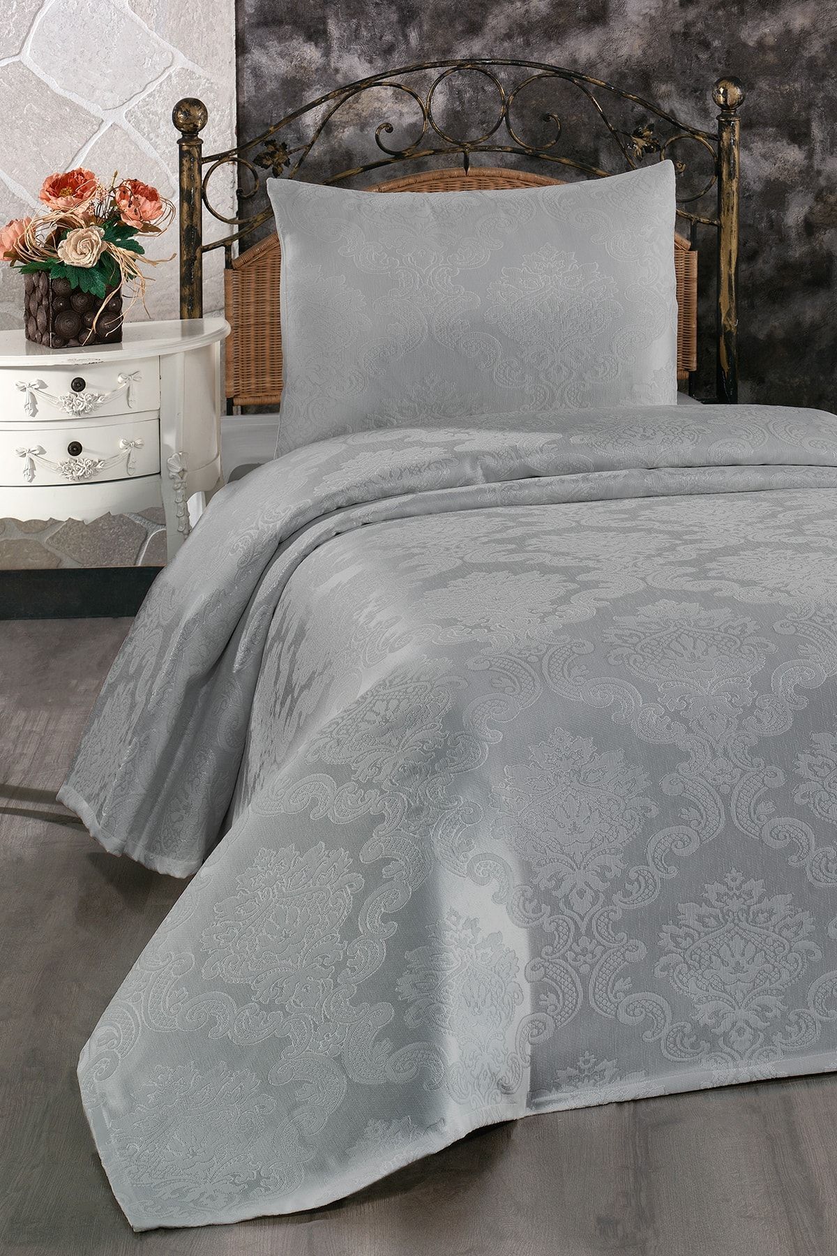 Çeyiz Diyarı Busem Jakarlı Şönil Tek Kişilik Yatak Örtüsü Gri Özellikleri