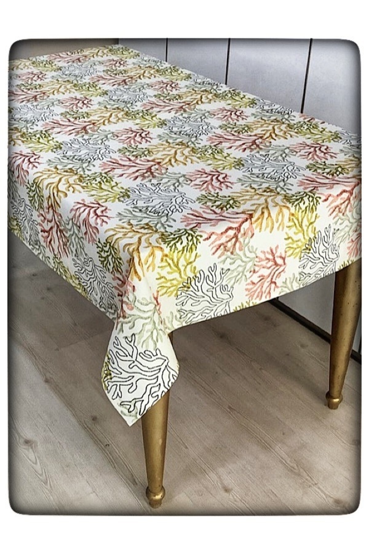 ÇeyizHan Mercan Desenli Duck Keten Dertsiz Masa Örtüsü
