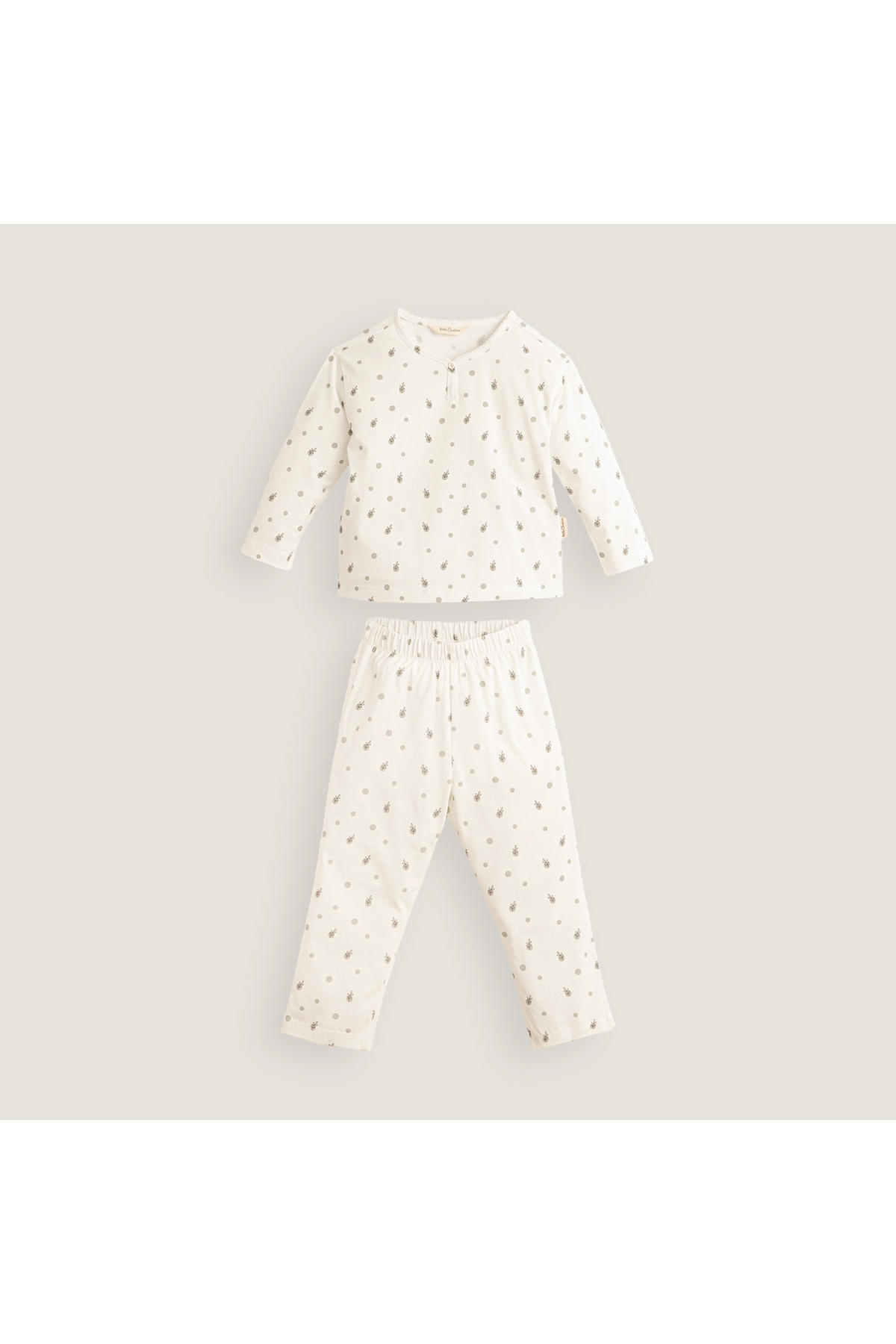 Chakra Pijama Baskılı Üst+Alt Set Vanilya
