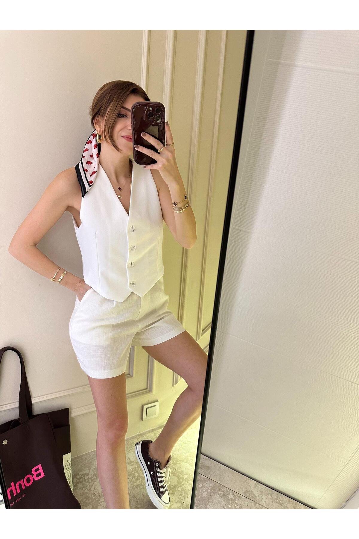 Chamakh Beyaz Kontrast Yelek