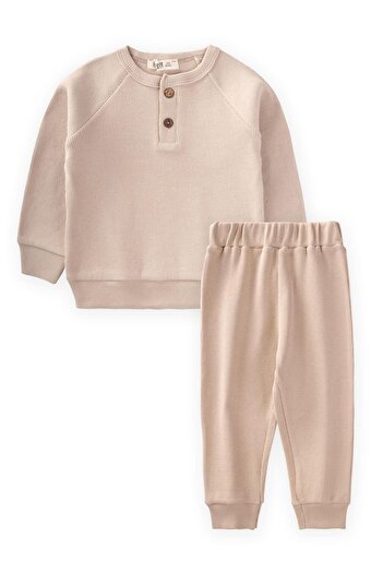 Cigit Patlı Bebe Eşofman 0-3 Yaş Bej