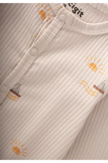 Cigit Ayaklı Kendinden Eldivenli Desenli Tulum 0-9 Ay Güneş Desen