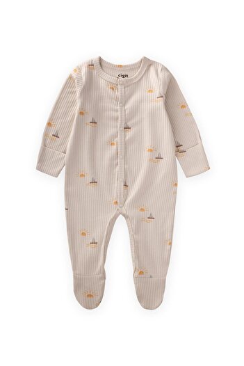Cigit Baskılı Tulum 0-3 Yaş Bej