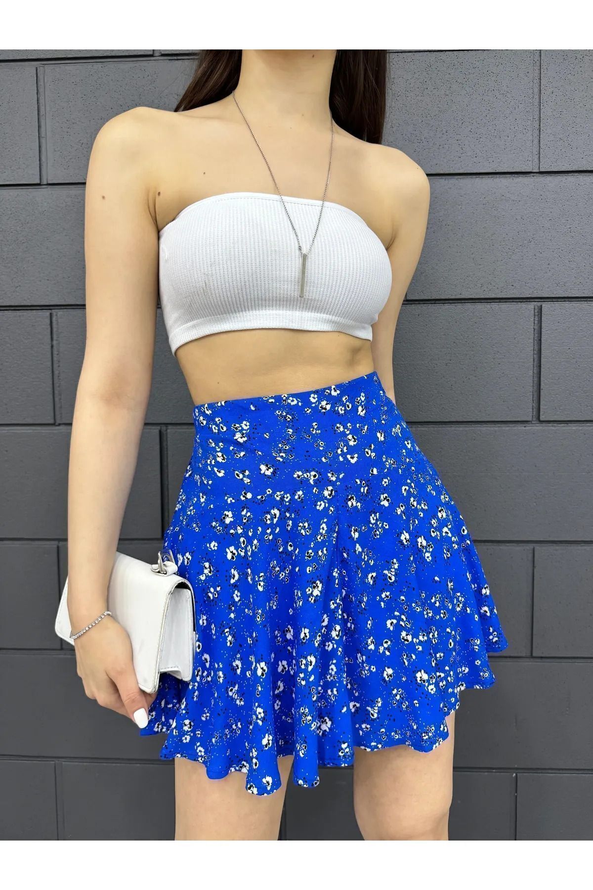 Cistern İstanbul Kadın Mavi Çiçek Desenli Yazlık Şort Etek