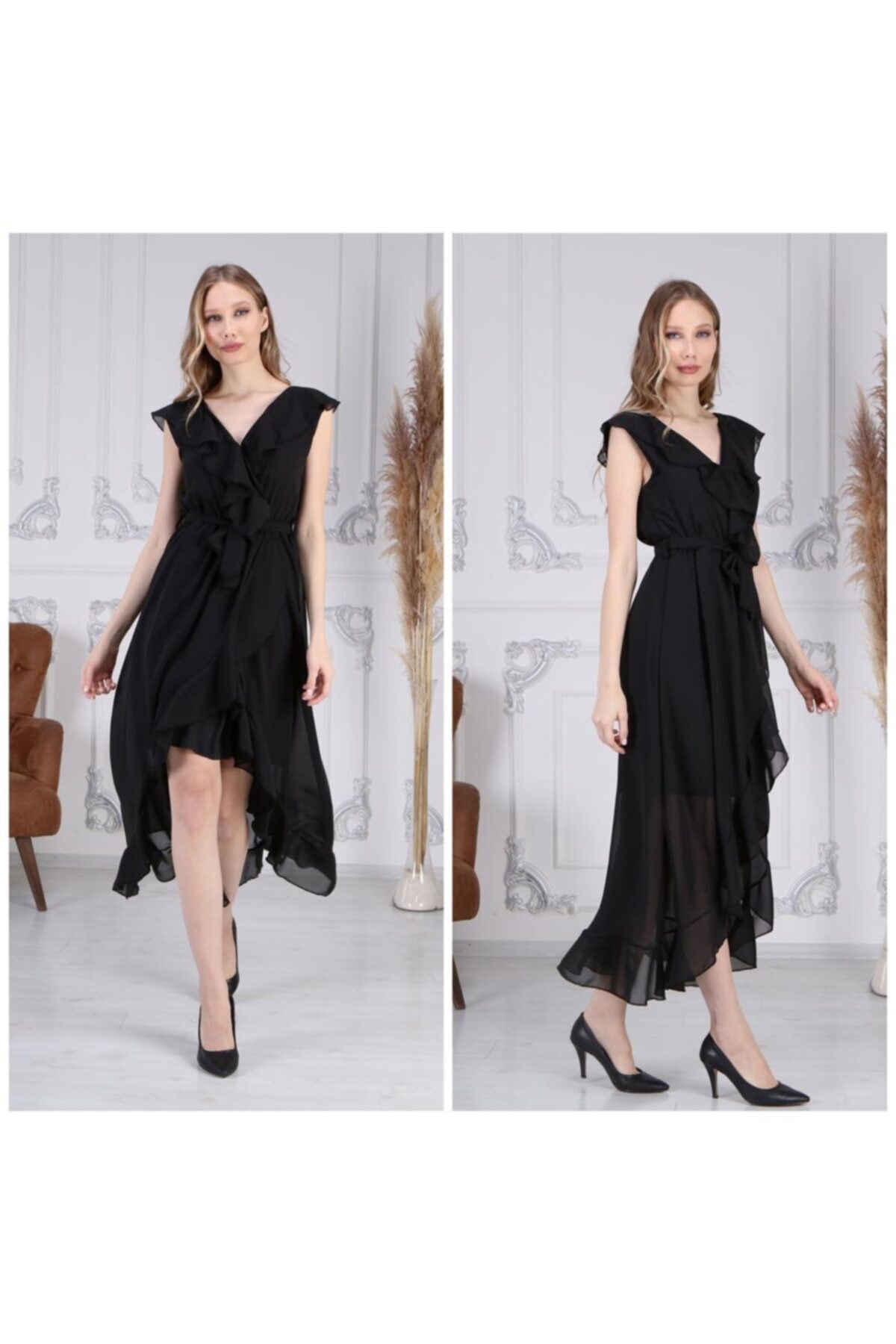 CİXAPLE Fırfırlı Düz Şifon Elbise Özellikleri
