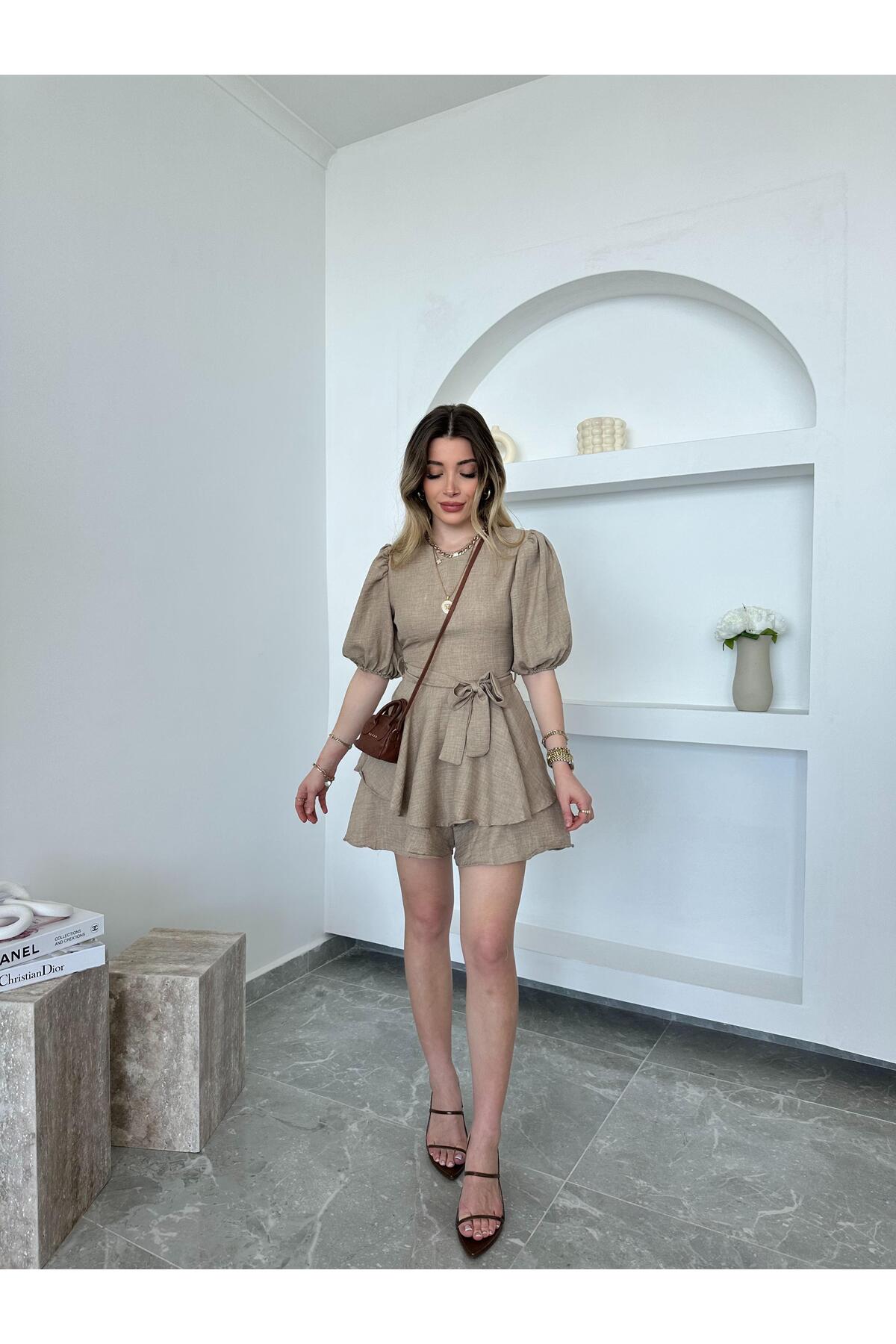 CKBUTİK Bej Şort Astarlı Katlı Elbise