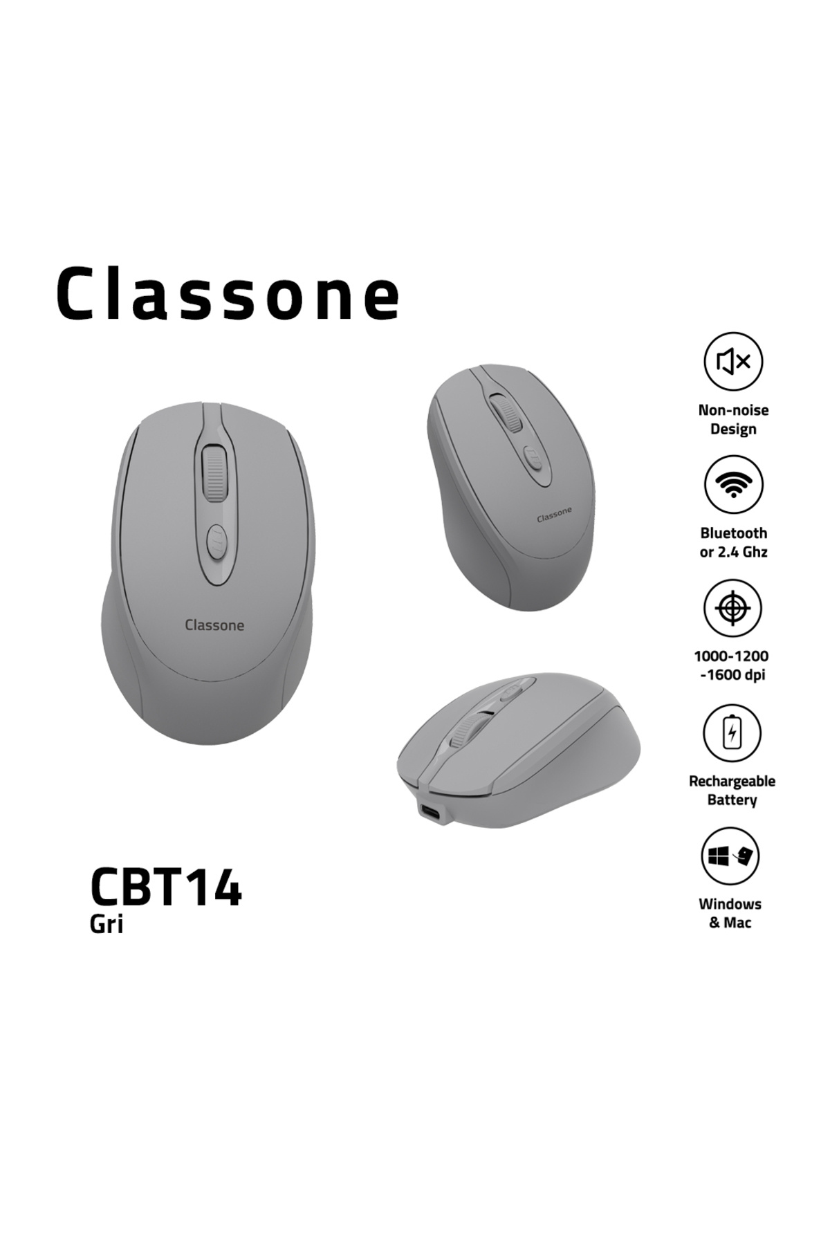 Classone CBT14 Bluetooth + 2.4 Ghz Şarj Edilebilir Kablosuz Mouse - Gri Özellikleri