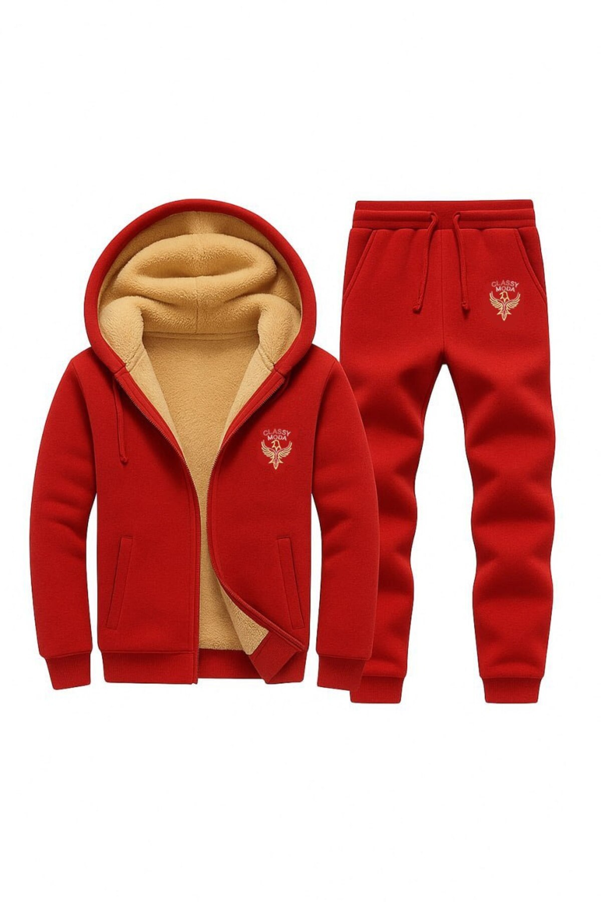 CLASSY.MODA Eşofman Takımı - 2lü Alt-üst - Nakiş - Kapüşonlu - 3 Iplık Şardonlu -üst Iç Welsoft Kollar Hariç