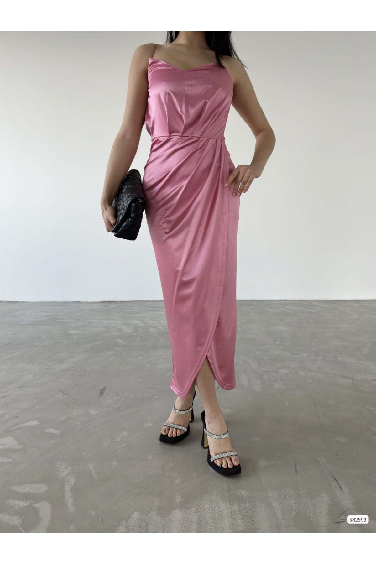 CLASSY.MODA SATEN KUMAŞ ASKILI YIRTMAÇ DETAY ELBISE Özellikleri