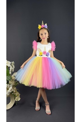 Delfini kids KUROMİ Taç Aksesuarlı Pullu Doğum Günü Prenses Kostümü Ve Elbisesi