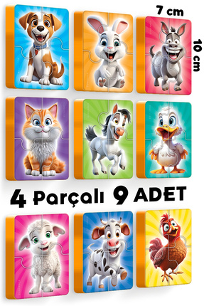 minİQ toys minIQ toys Ahsap 10'lu Mini Puzzle Seti -Afacan Kopek,Saskin Kedi,Gurultucu Aslan,Cuce Zurafa...