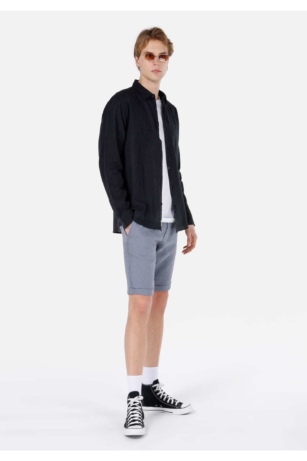 Colin's Regular Fit Dokuma Orta Bel Düz Erkek Mavi Şort Özellikleri