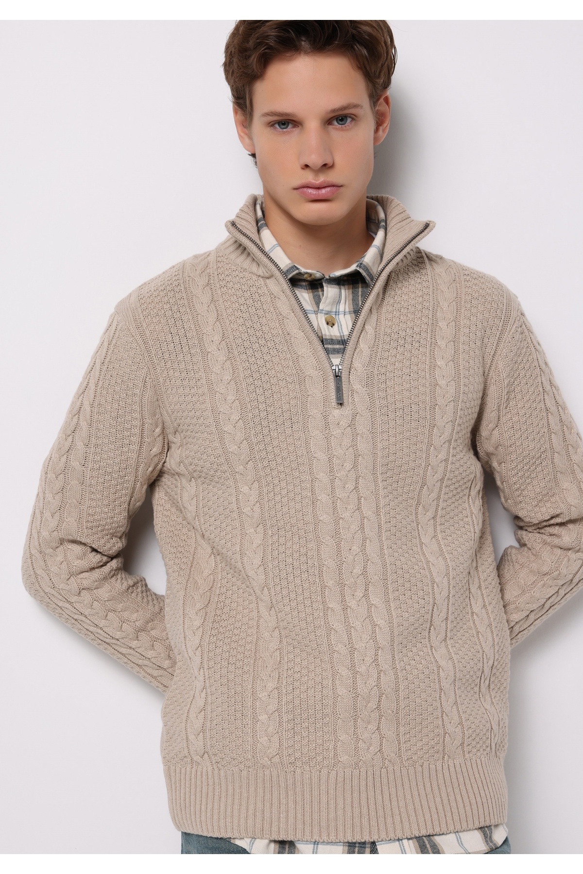 Colin's Regular Fit Dik Yaka Jakarlı Erkek Ekru Kazak Özellikleri