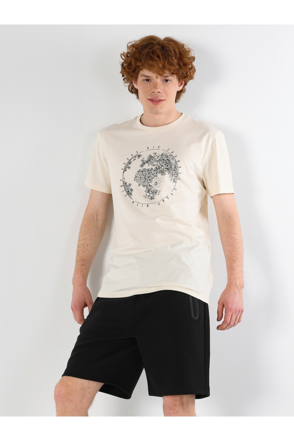 Colin’s Regular Fit Yuvarlak Yaka Düz Erkek Ekru Kısa Kol Tişört
