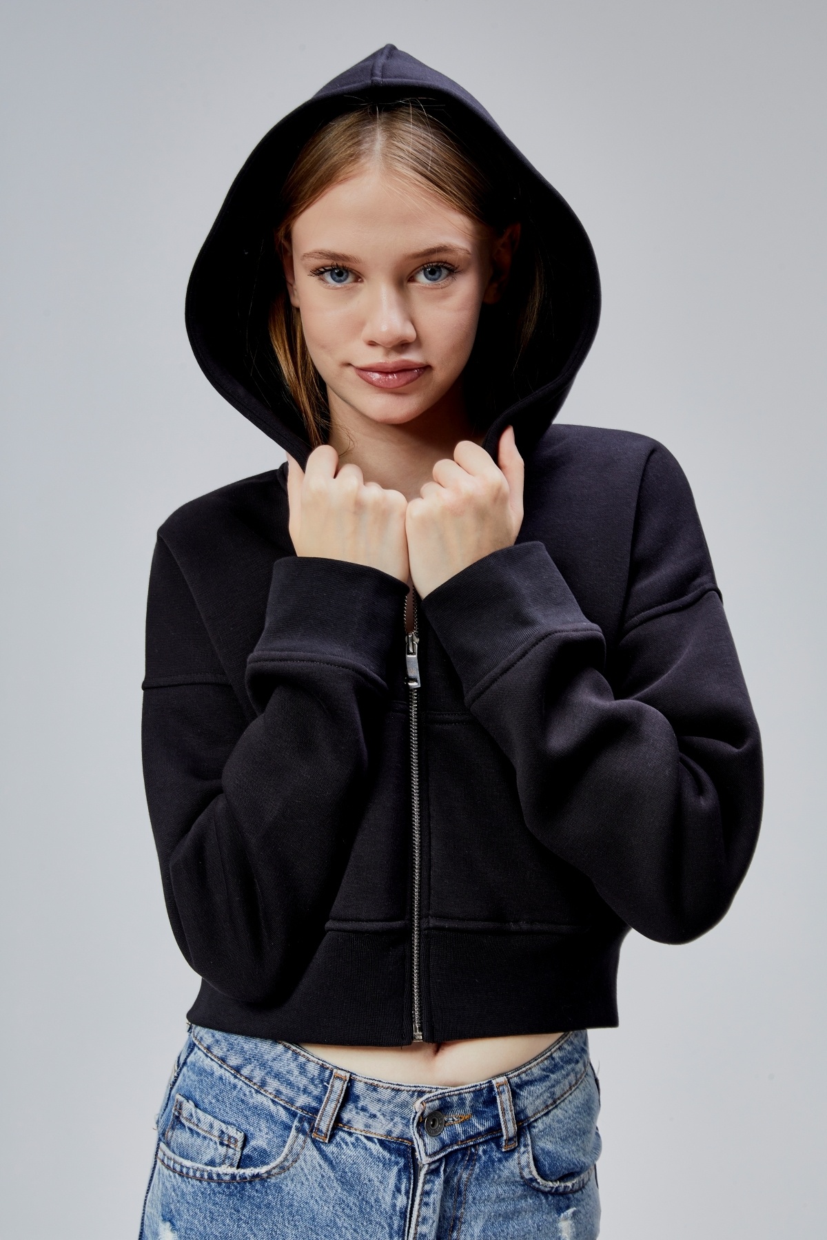 COMBİNE MİCHAİL Kadın Kapşonlu Siyah Basic Crop Sweatshirt Özellikleri