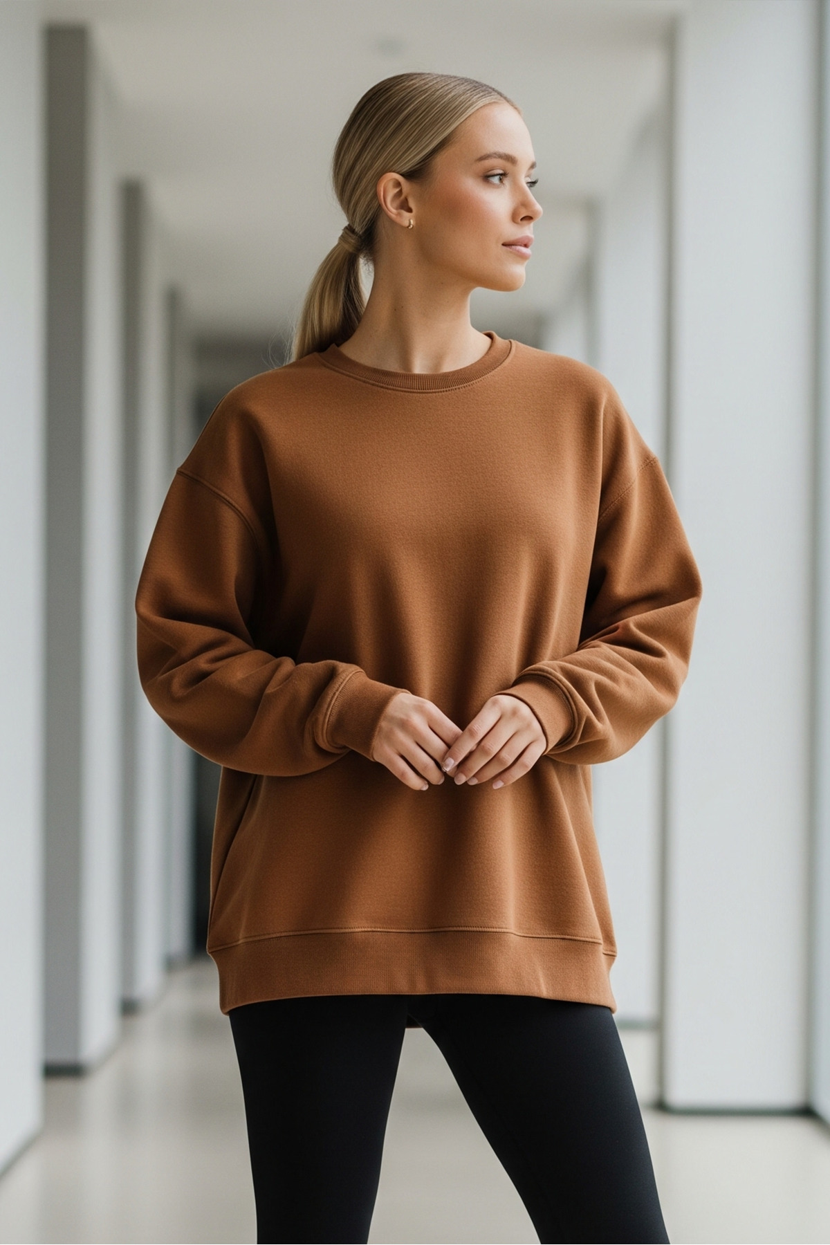 COMBİNE MİCHAİL Kadın Oversize Kışlık Salaş Kahve Sweatshirt Özellikleri