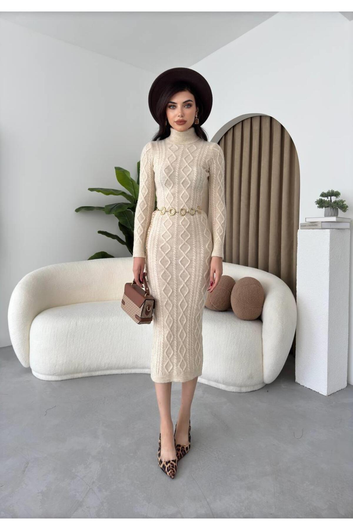 conconmoda Boğazlı Uzun Triko Elbise