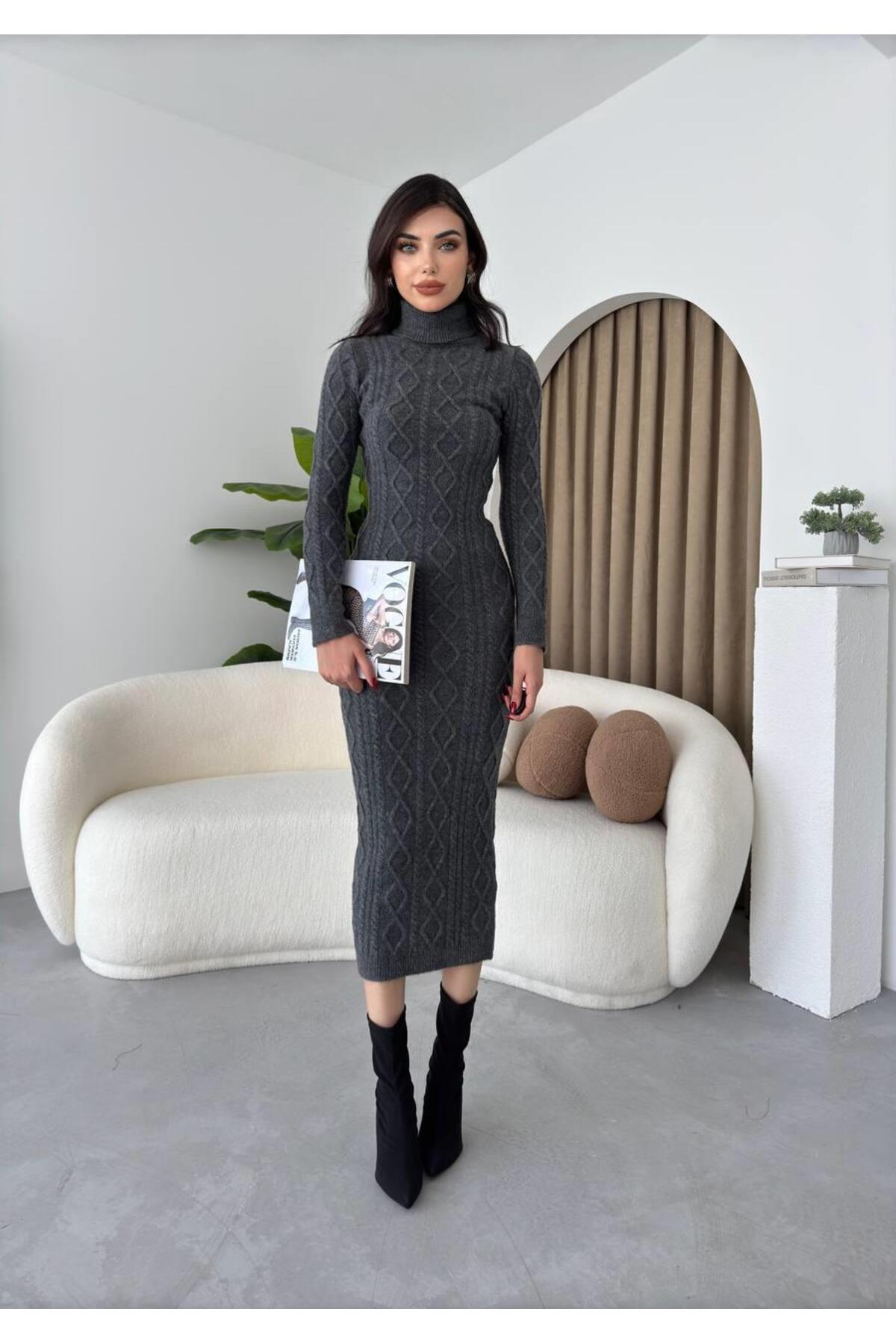 conconmoda Boğazlı Uzun Triko Elbise
