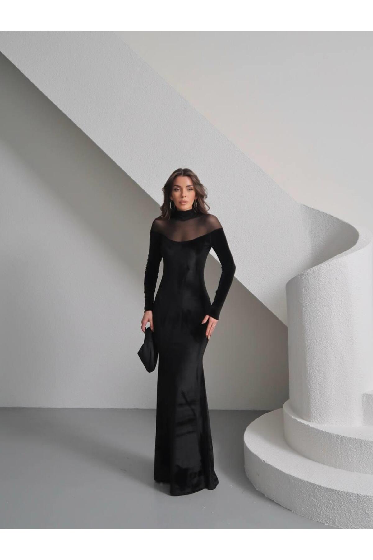 conconmoda Kadife&Tül maxi boy elbise
