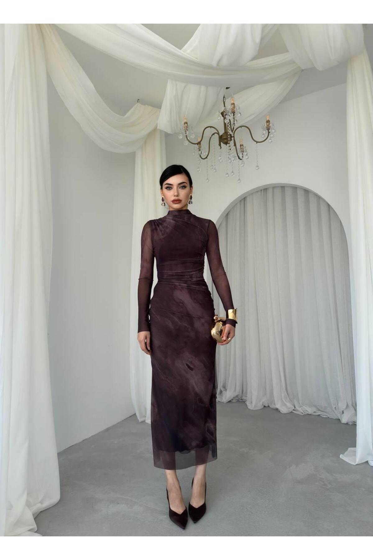 conconmoda Lizz Tül Kol Midi Elbise