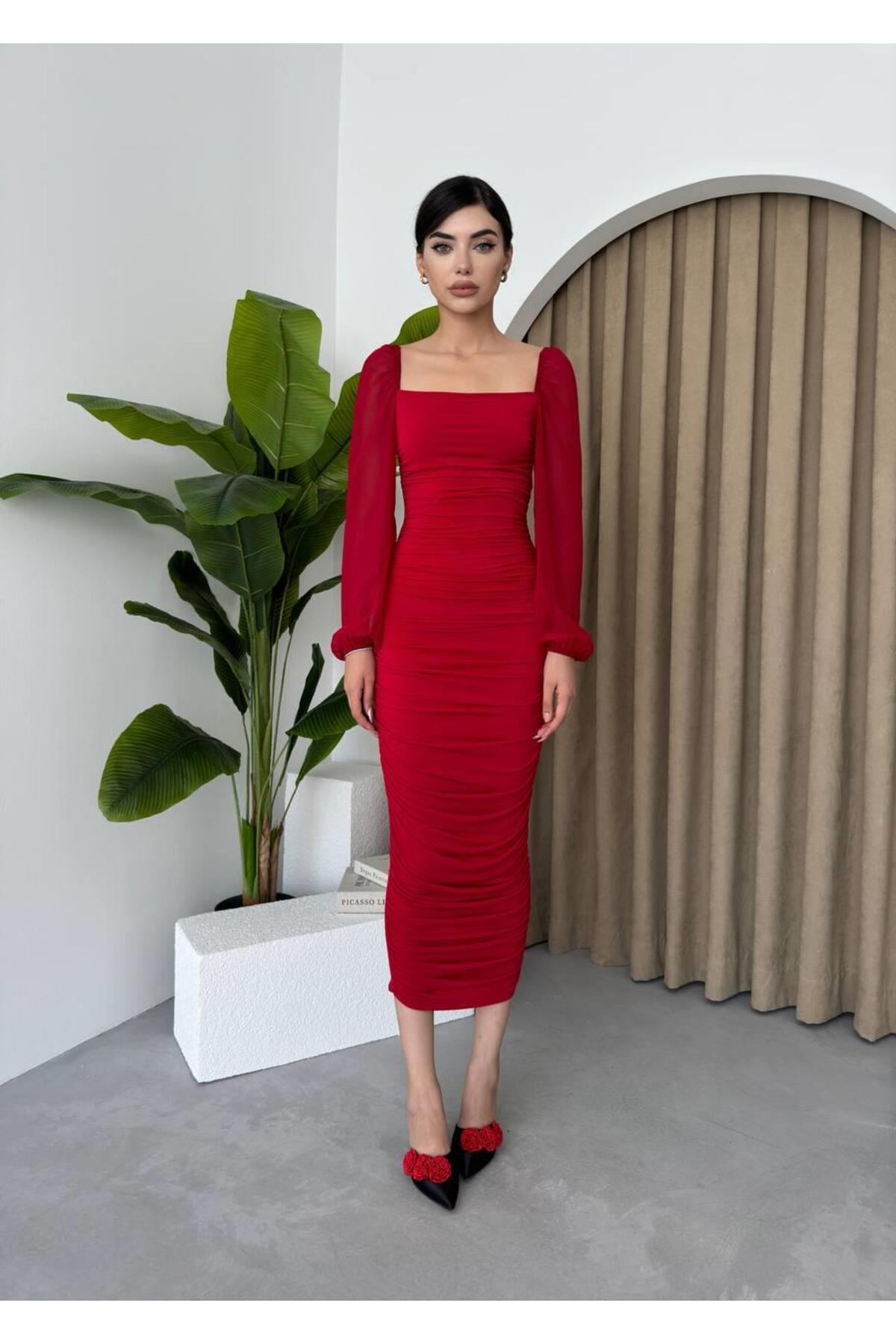 conconmoda Sildane Drapeli Tül Kol Elbise Özellikleri