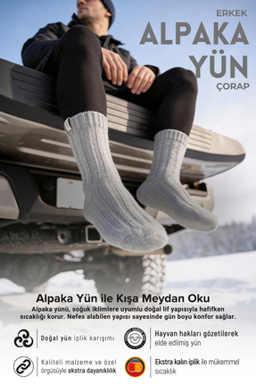 izaycollection 3 ' ADET ÖZEL ALPAKA YÜNÜ DERBİLİ UNİSEX BOT ÇORAP