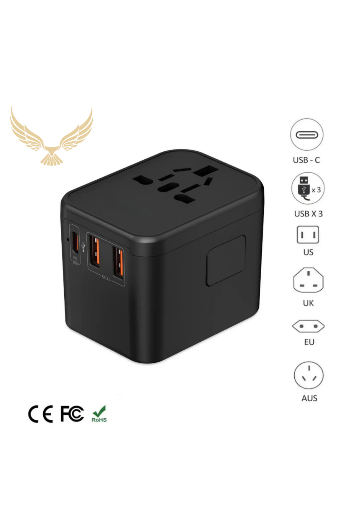 CROW'S TECH Rocs 20w Uyumlu Hızlı Şarj Adaptörü Seyahat Şarj EU-US-AU-UK 2x Usb Type-c Anahtarlı Adaptör CT-J13 Özellikleri