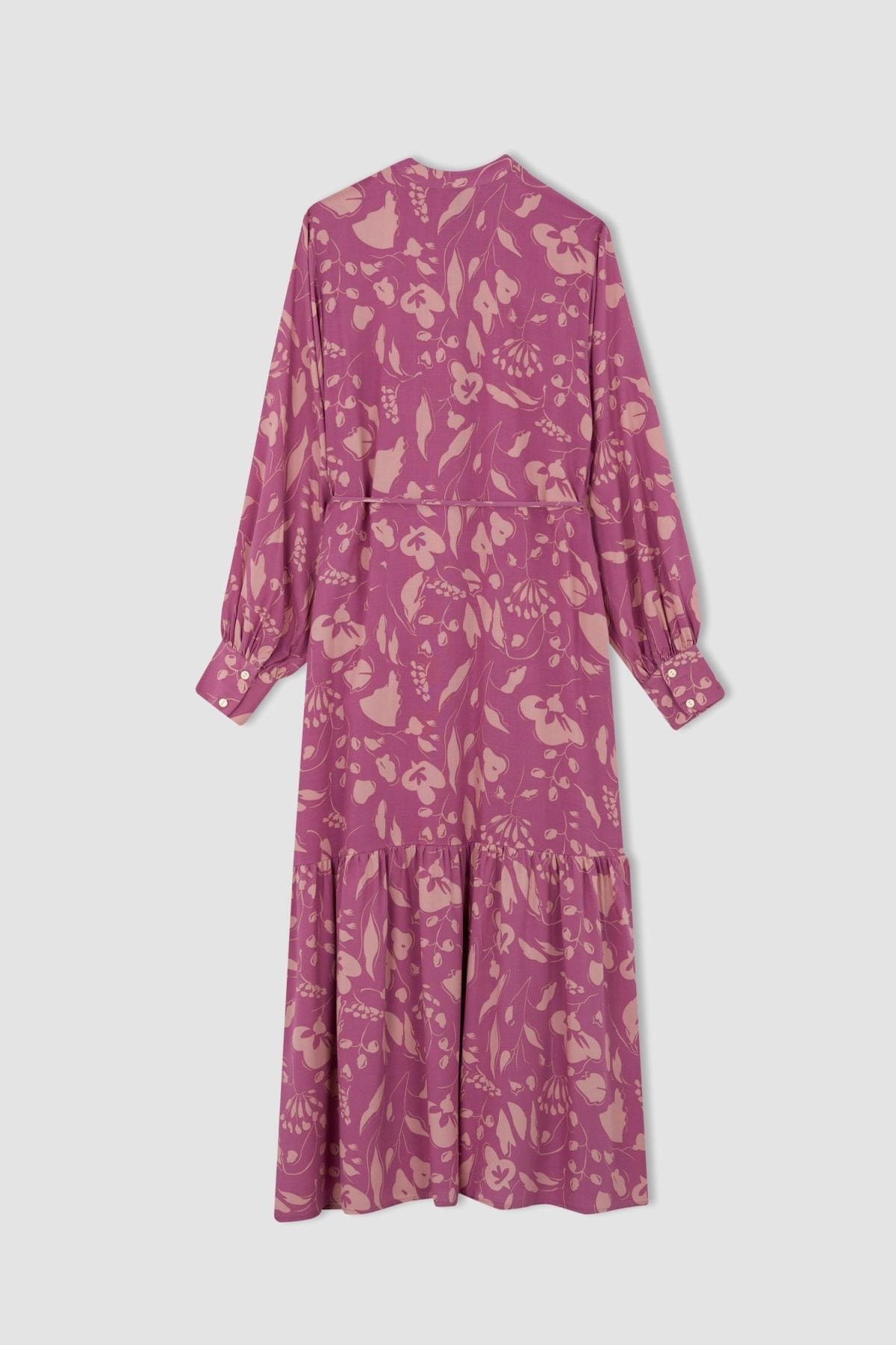 Vlastnosti DeFacto Květinové Maxi šaty s dlouhým rukávem Regular Fit s výstřihem a výstřihem
