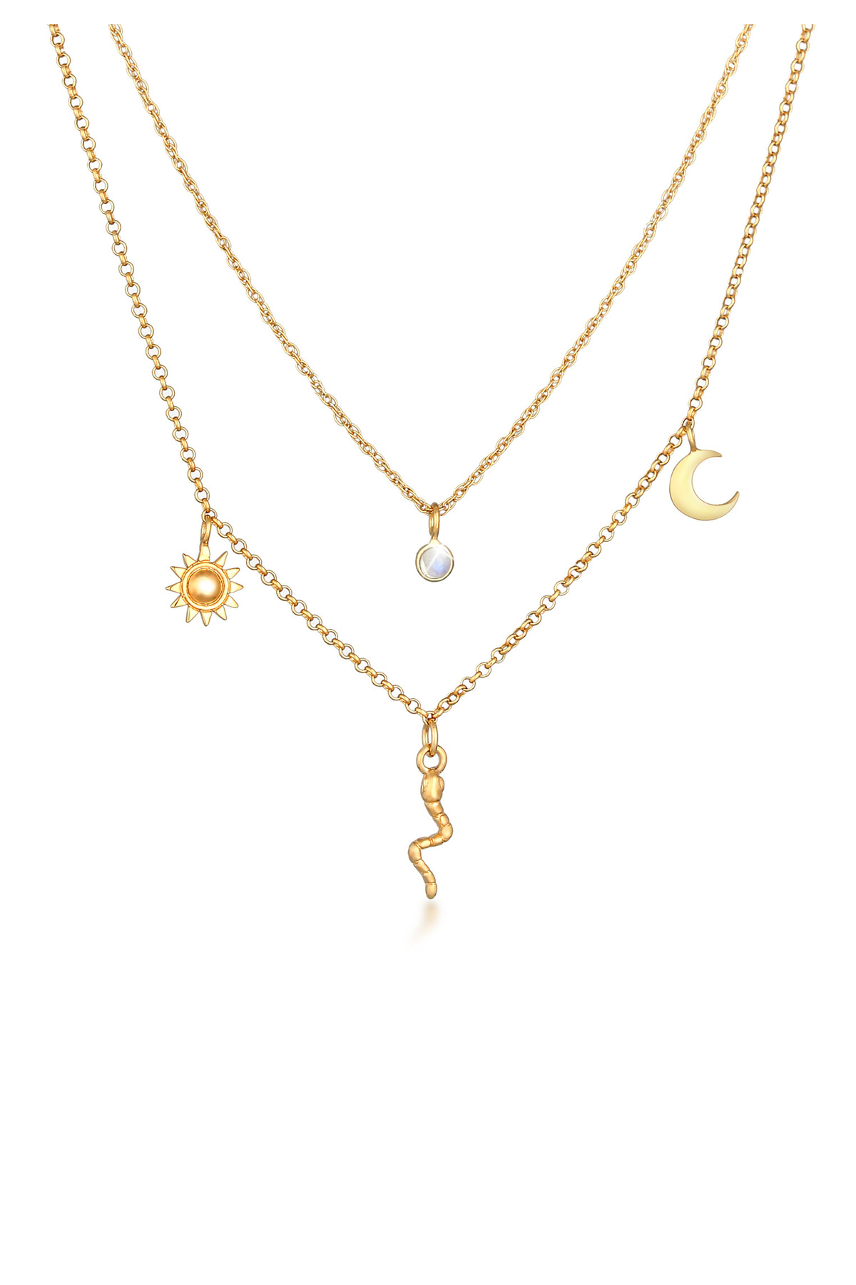 Vlastnosti ELLI Dámský náhrdelník s přívěskem Slunce a Měsíc s hadem a měsíčním kamenem ze stříbra 925, pozlacený