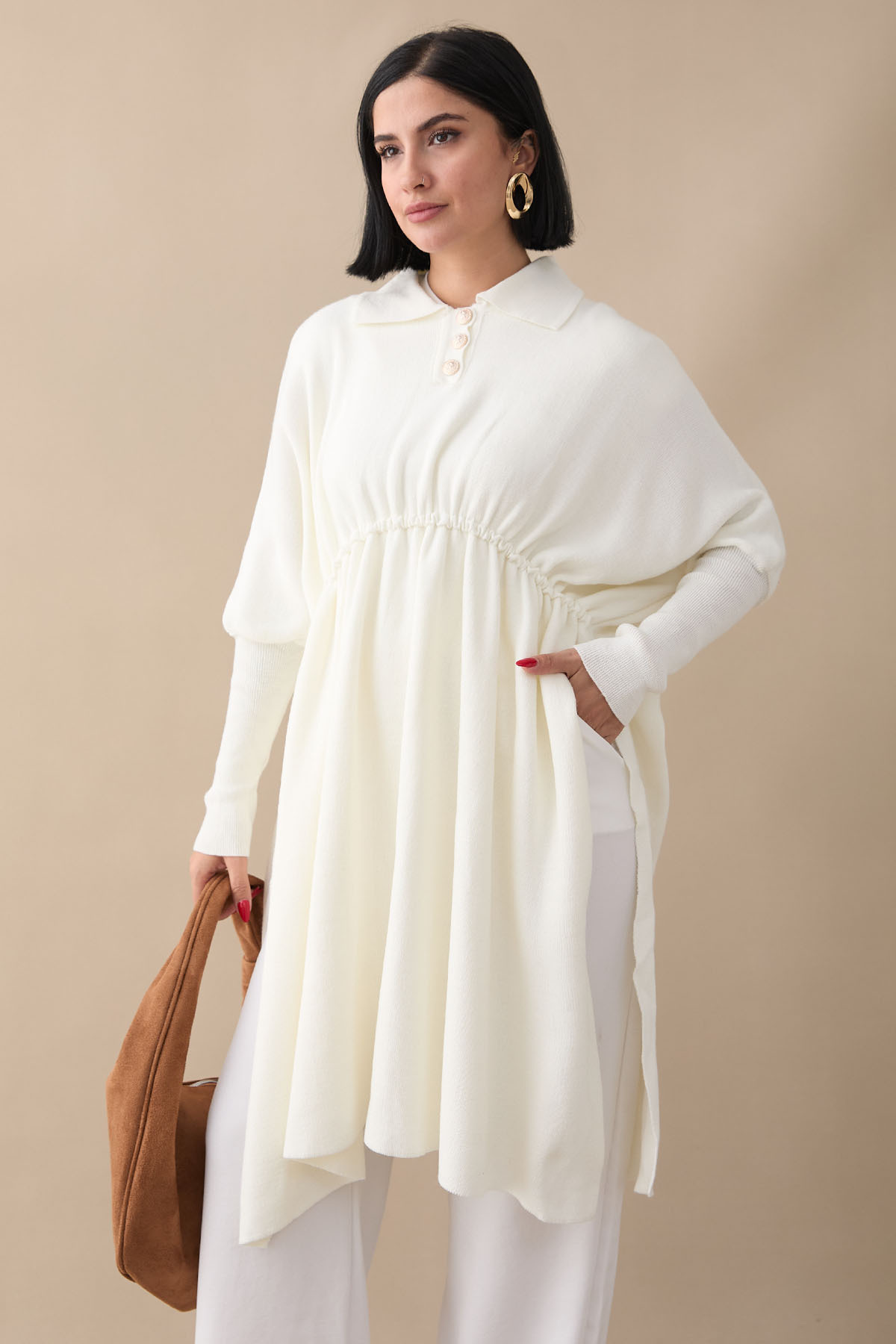 InStyle Ecru pončo s balonovým rukávem