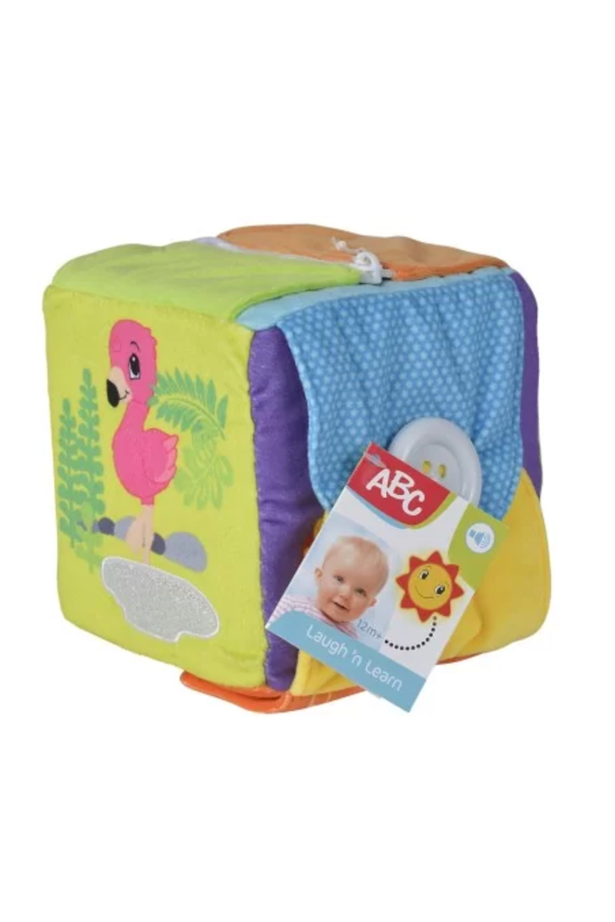 Foam cube with sides measuring 13 cm and images of cute animals. 4 of the sides have different fastening systems.