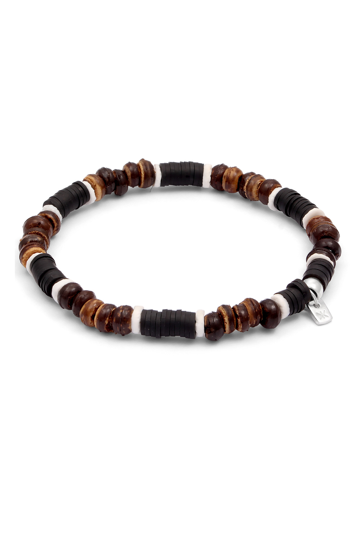 Vlastnosti KUZZOI Náramek Pánský náramek Heishi korálky Hnědé 925 Sterling Silver Léto / Pláž 19 cm