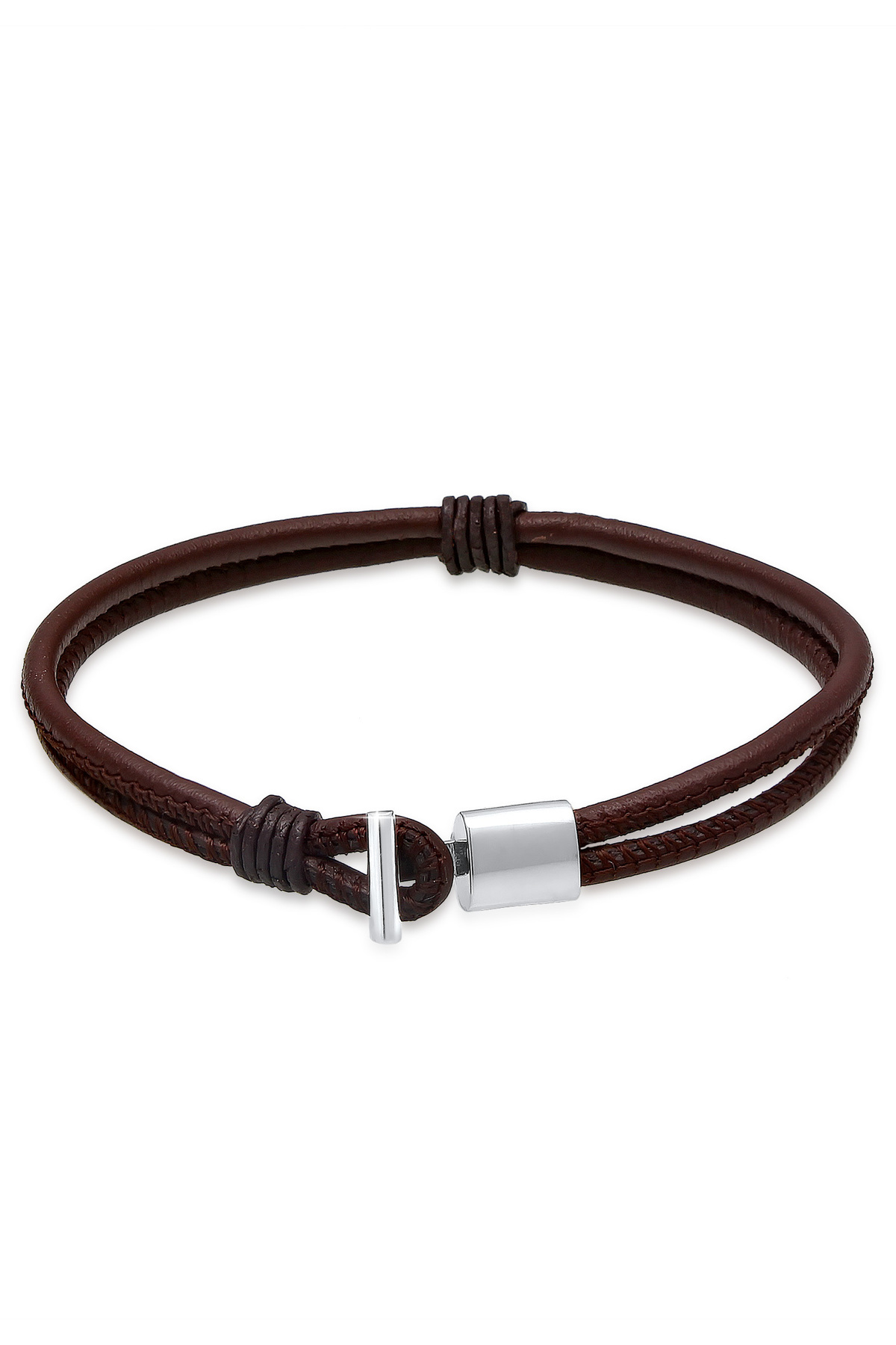 KUZZOI Náramek z vrstveného pravého kůže s uzlem, černý, stříbro 925