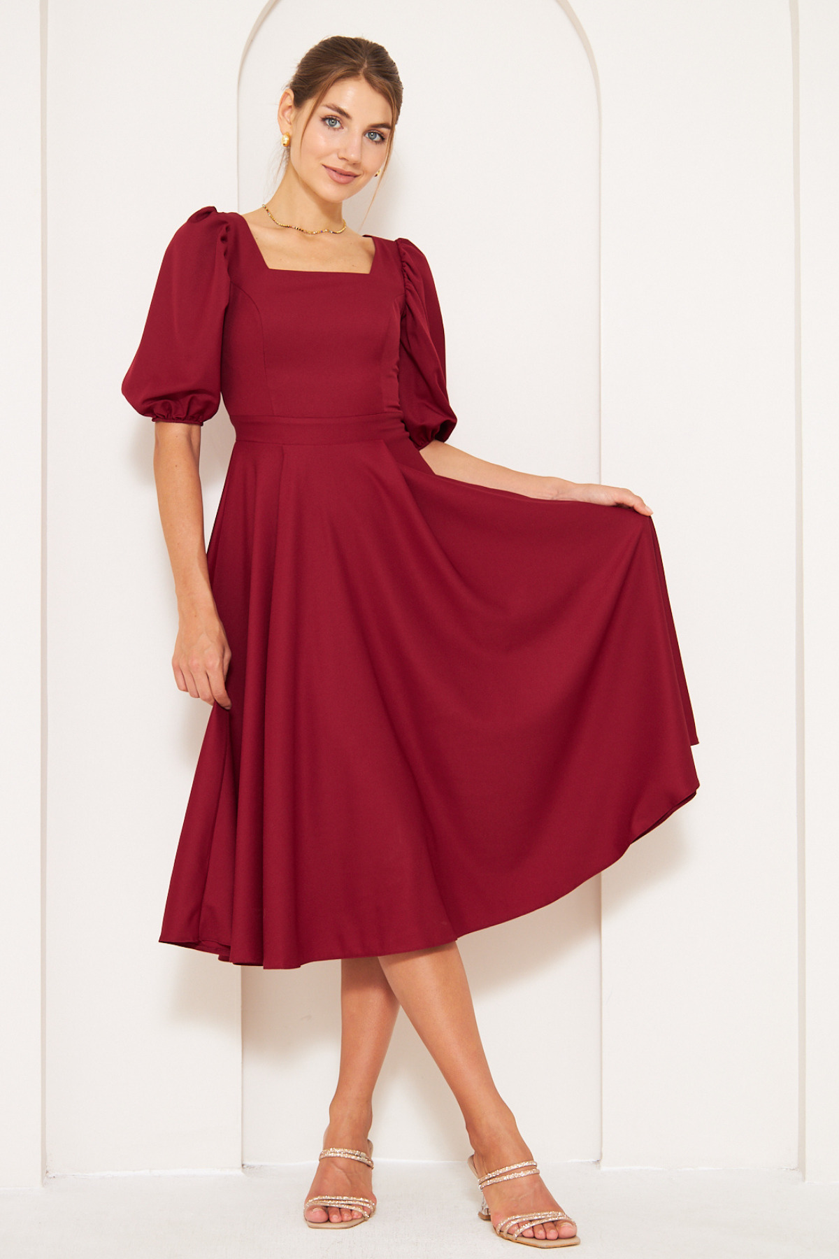 lovebox Flexibilní látka čtvercový výstřih Krátký rukáv Midi Délka Rozšířené Velké Vínové večerní šaty 420