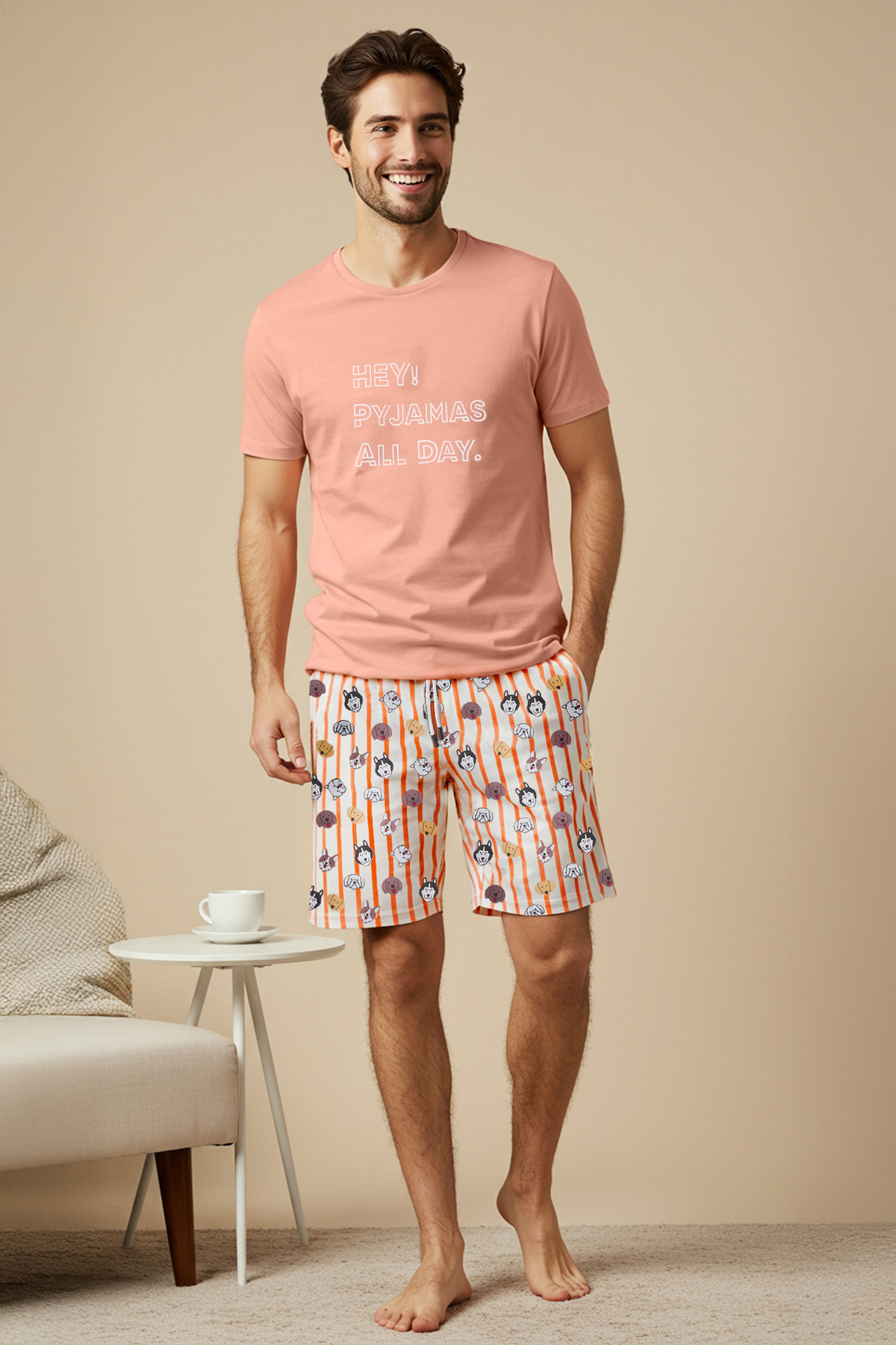 Trendyol Collection Sada pletených pyžam s oranžovým psem Regular Fit - Tmnss23Pt00000