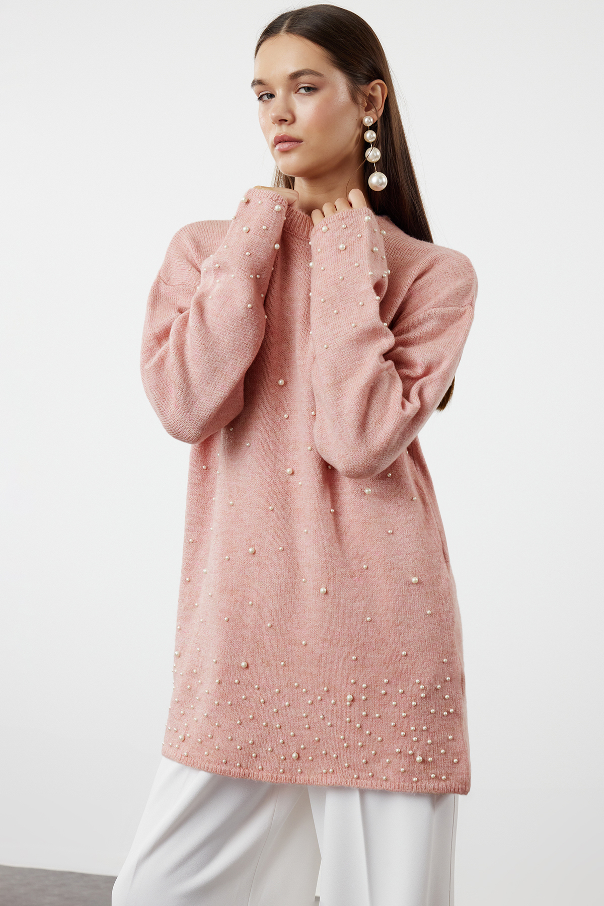 Vlastnosti Trendyol Modest Pearl Detailed Dried Rose pletený svetr - TCTAW25AK00018