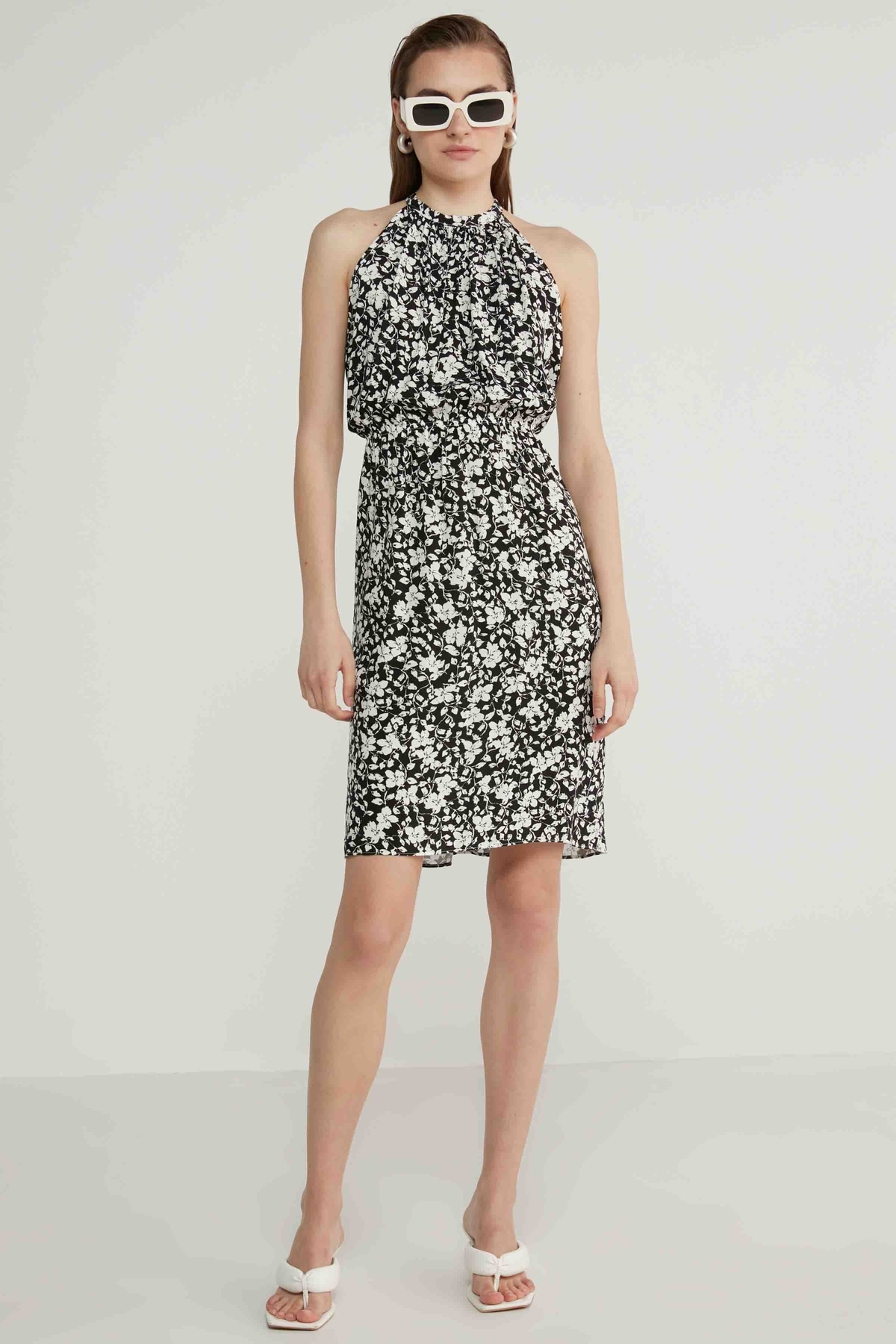 Vitrin Viskózové šaty s ohlávkou s výstřihem a květinovým vzorem